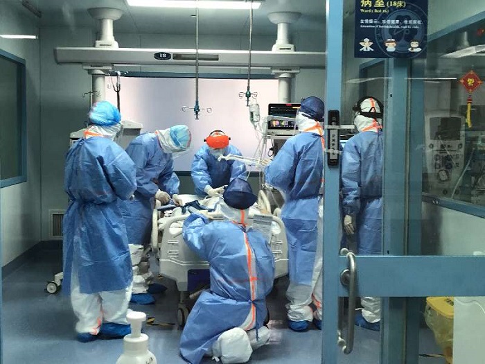 新疆医科大学第一附属医院急诊重症科主任杨建中和他的13勇士团队给病人插管。新疆医科大学第一附属医院供图