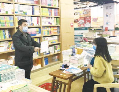 福建省福州市鳌峰坊书城工作人员正在为直播做准备。 朱丹丹摄 浙江省新华书店集团物流配送有限公司员工正在打包读者通过“…